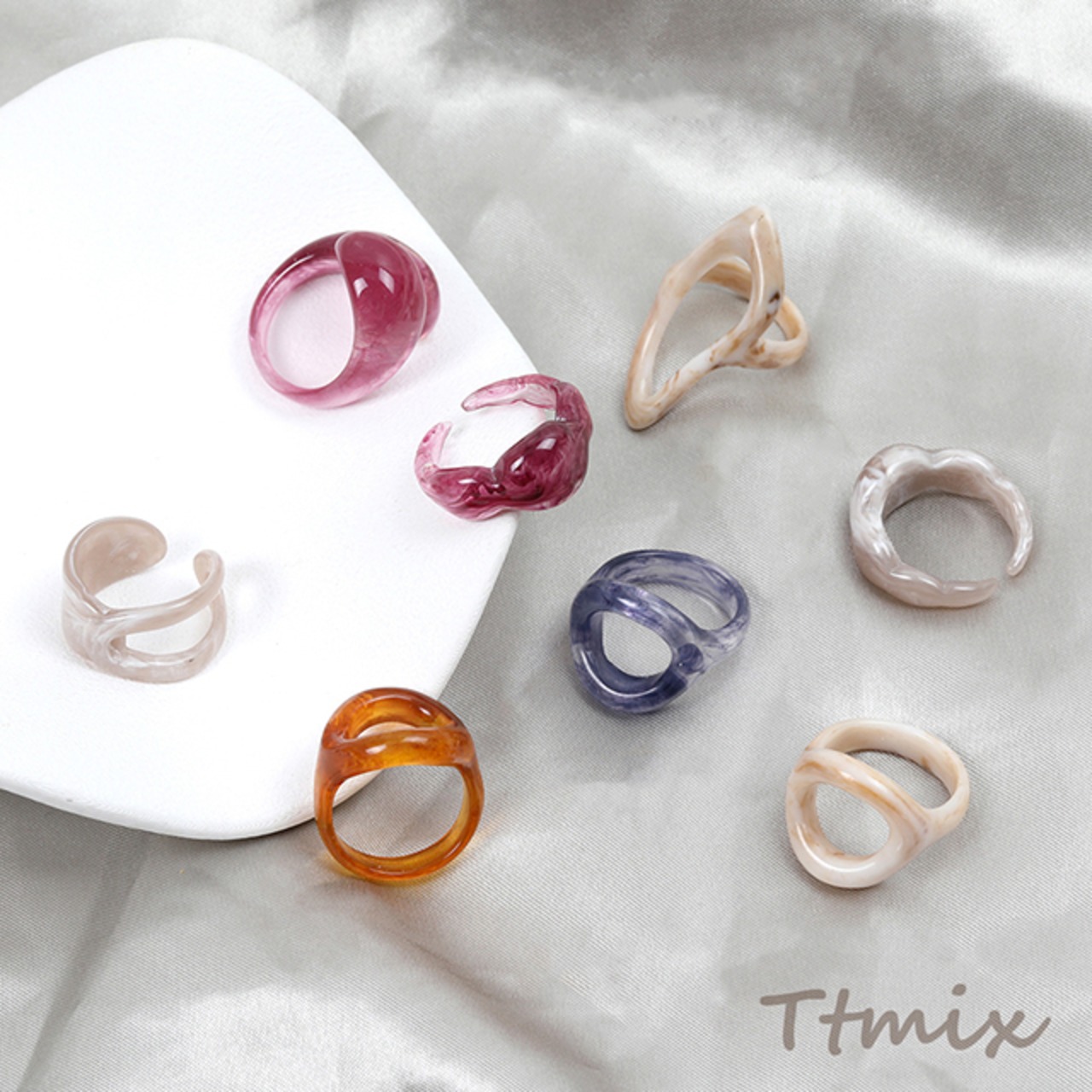 A4528 レディスリング 指輪 樹脂リング ミックスカラー(5ヶ)