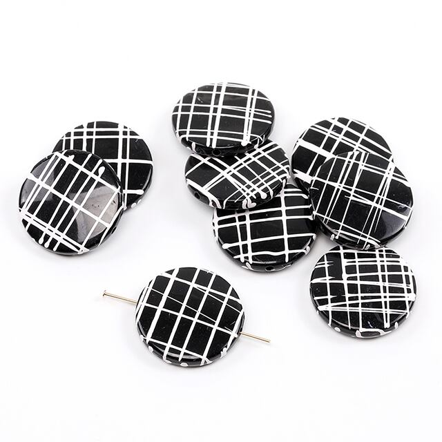A4530 アクリルビーズ コイン型 25mm ブラック×ホワイト(40ヶ)