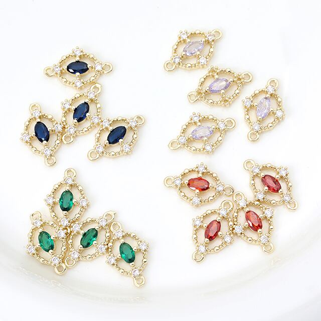 M11972 色褪せにくい14KGPゴールドメッキ 高品質ジルコニアチャーム オーバル 2カン 10×15.7mm(2ヶ) | Beads&parts BASE2号店