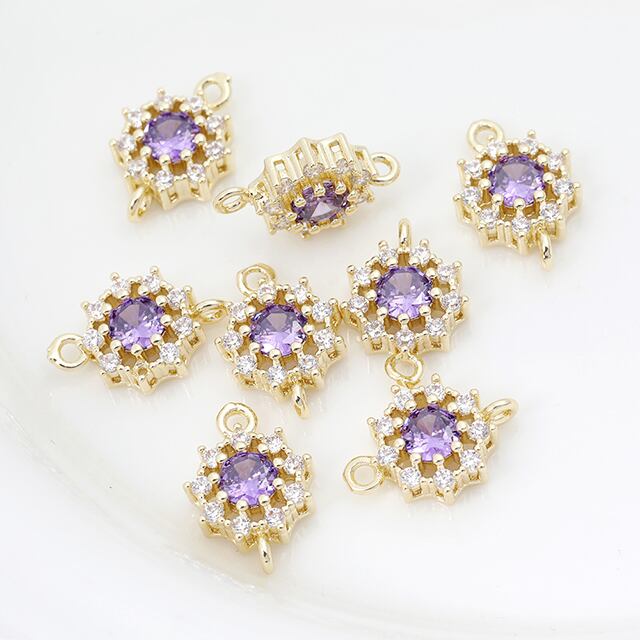 M11980 色褪せにくい14KGPゴールドメッキ 高品質ジルコニアチャーム ラウンド 2カン 10.5×15.5mm(2ヶ) | Beads&parts BASE2号店