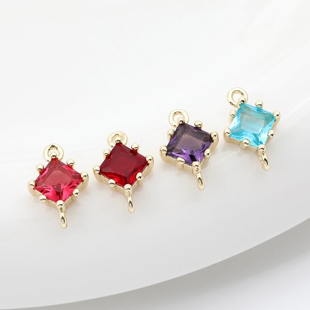 M11987 色褪せにくい14KGPゴールドメッキ 高品質フレームガラスチャーム ひし形 2カン 8×12mm(2ヶ)