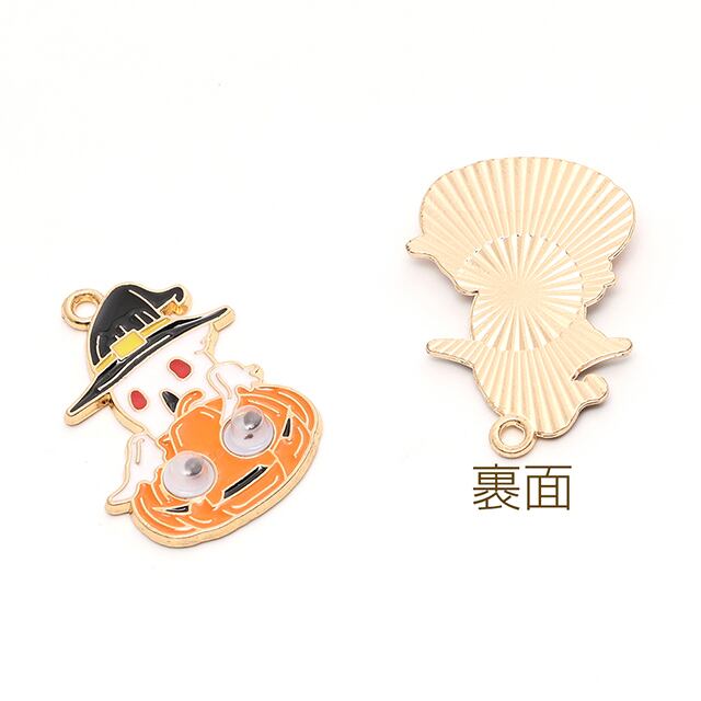 M12030 ハロウィンチャーム エポチャーム おばけ&カボチャ 1カン 19×28mm ゴールド(4ヶ) | Beads&parts BASE2号店
