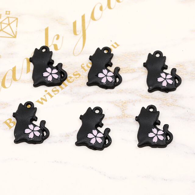 M12059 メタルチャーム 猫 1カン 11.5×16mm ブラック(6ヶ) | Beads&parts BASE2号店
