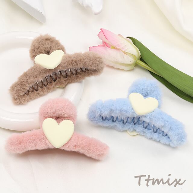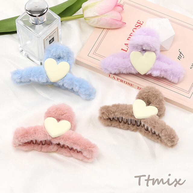 TH1146 フェイクファー付きバンスクリップ アクリルヘアクリップ ハート型 6×12cm(1ヶ) | Beads&parts BASE2号店