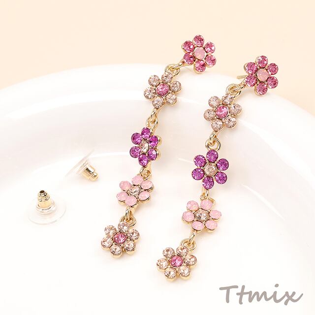 TE990 デザインピアス 5連フラワーのピアス 9×70mm(1ペア)