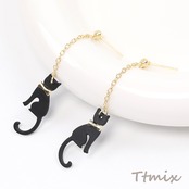 TE1001 デザインピアス チェーン&猫のピアス 66mm ブラック(1ペア)