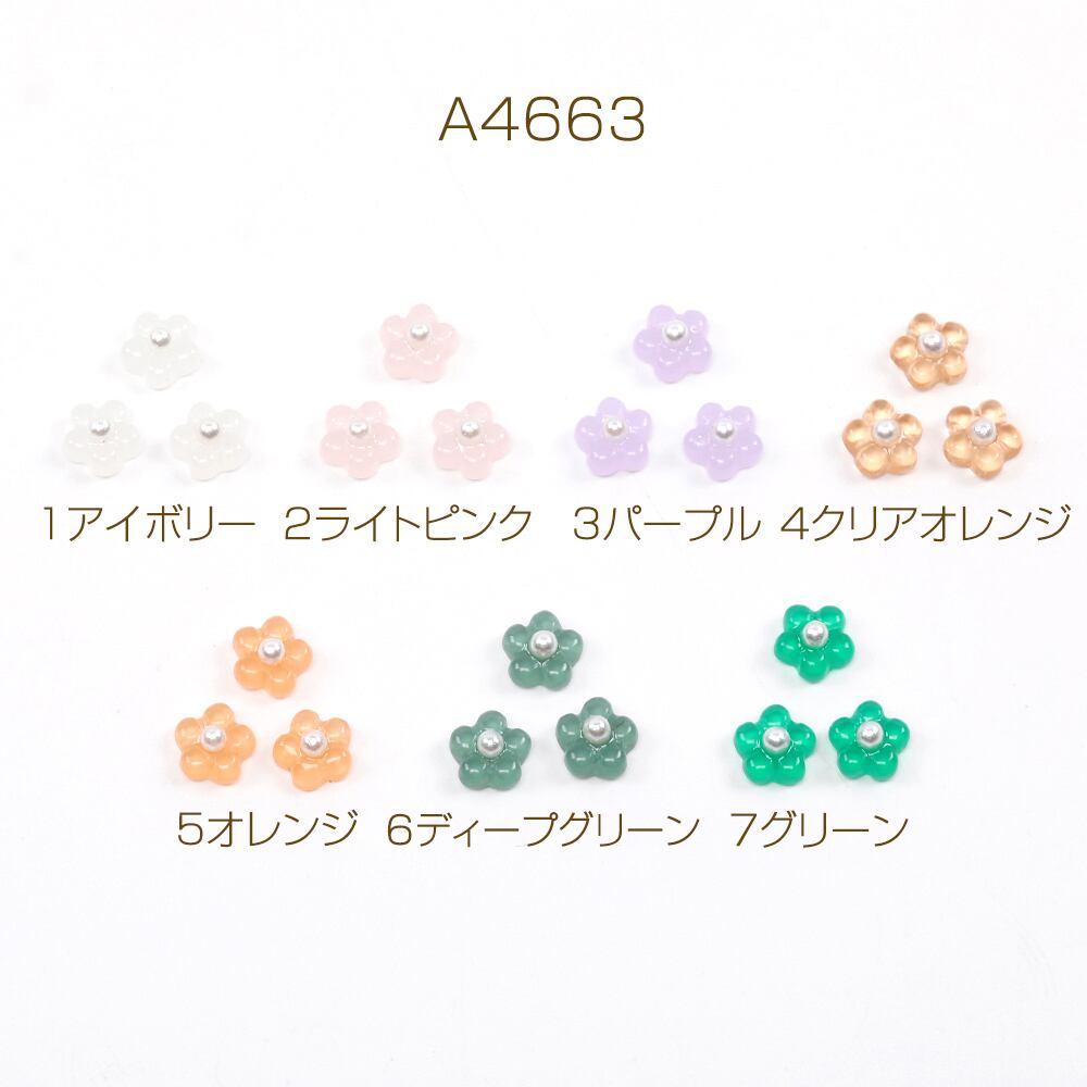 A4663 樹脂貼付けパーツ 樹脂カボション フラワー パール付き 7mm(10ヶ) | Beads&parts BASE2号店