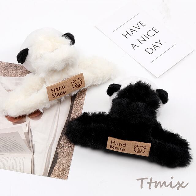 TH1171 バンスクリップ アクリルヘアクリップ フェイクファー付き パンダ 6×12cm