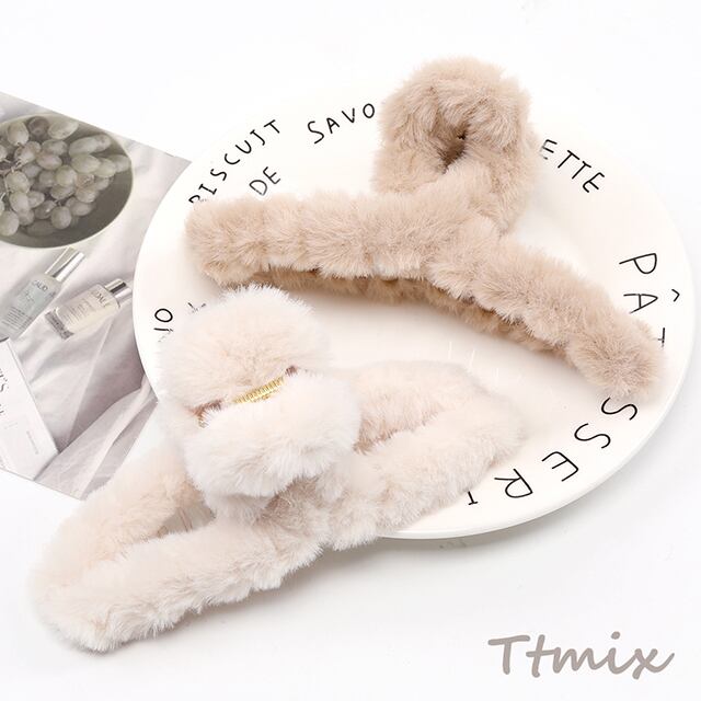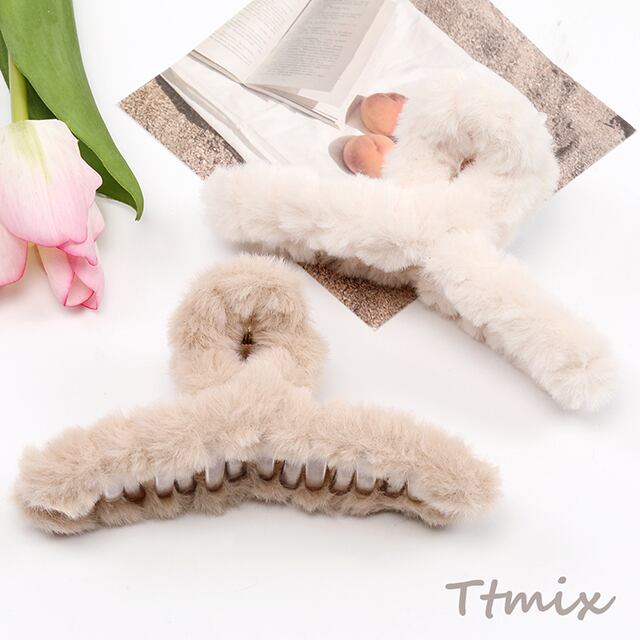 TH1172 バンスクリップ アクリルヘアクリップ フェイクファー付き 7×13cm