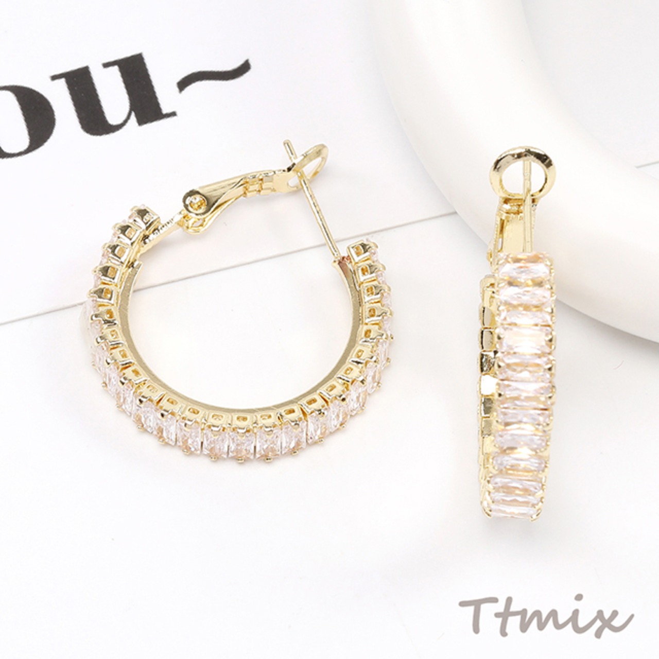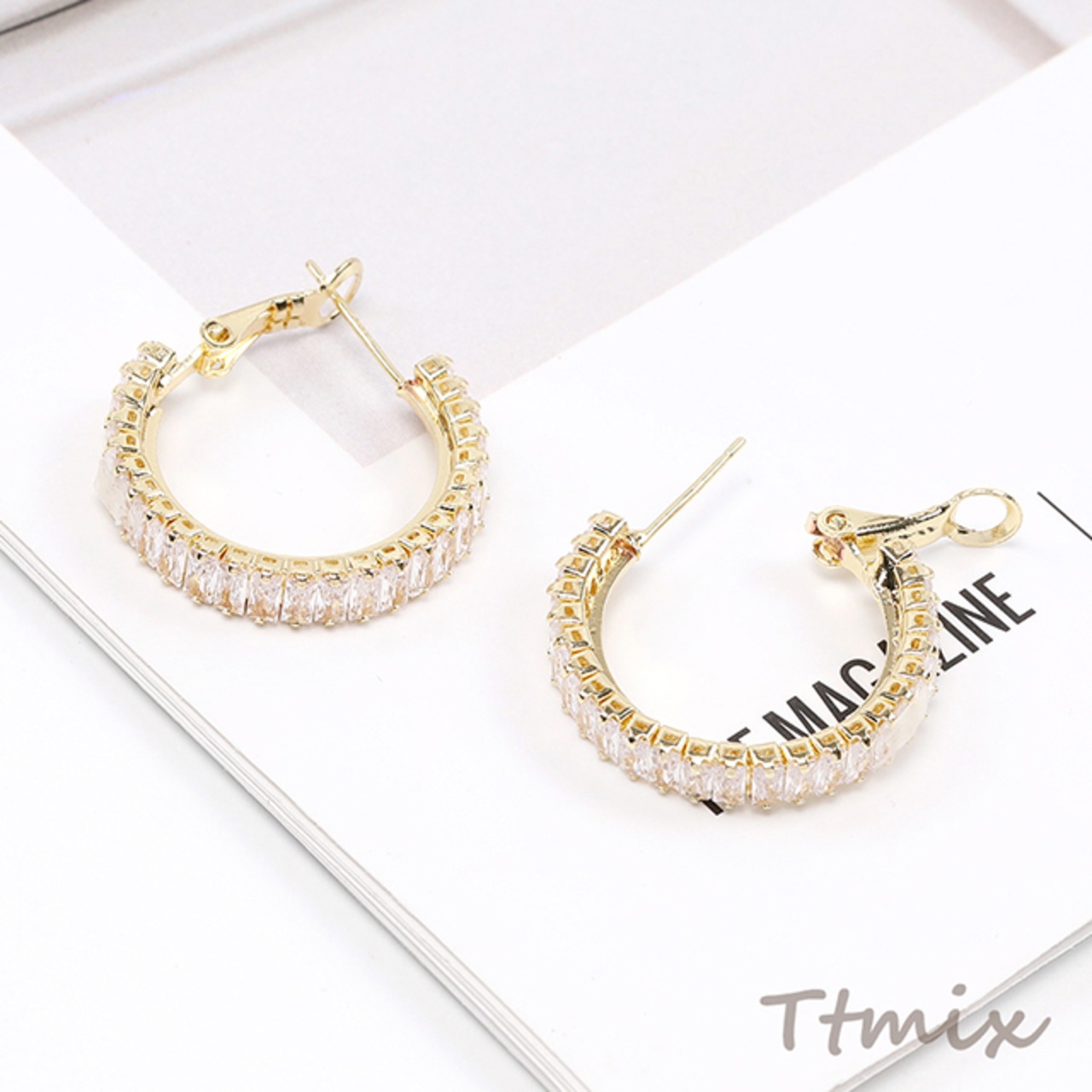 TE1057 デザインピアス ジルコニアピアス Cフープ 5×25mm(1ペア)