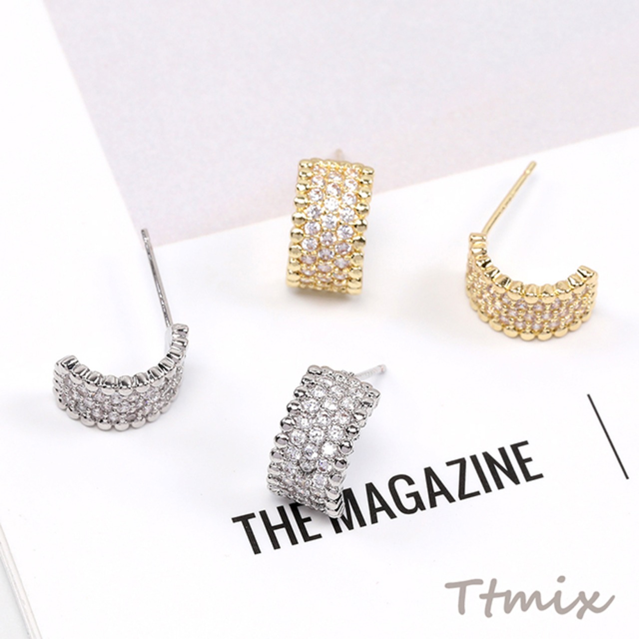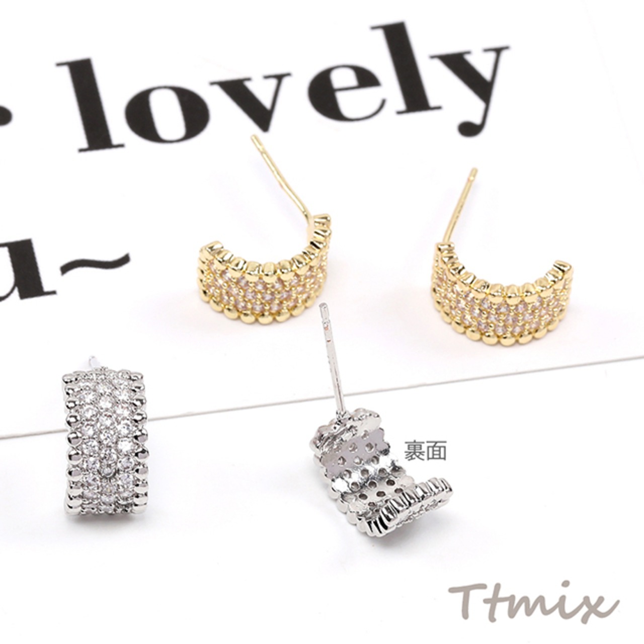 TE1059 デザインピアス ジルコニアピアス Cフープ 7×12mm(1ペア)