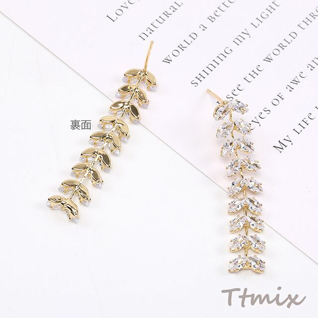 TE1061 デザインピアス ジルコニアピアス リーフ 8×42mm(1ペア)
