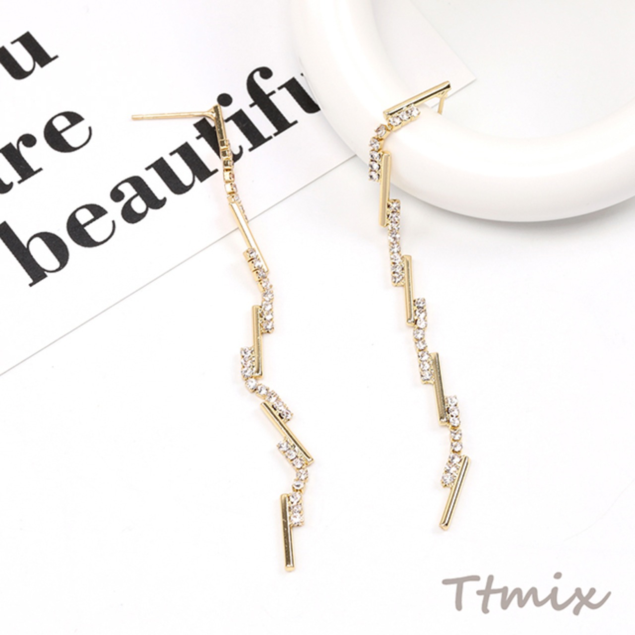 TE1062 デザインピアス ジルコニアピアス 80mm(1ペア)