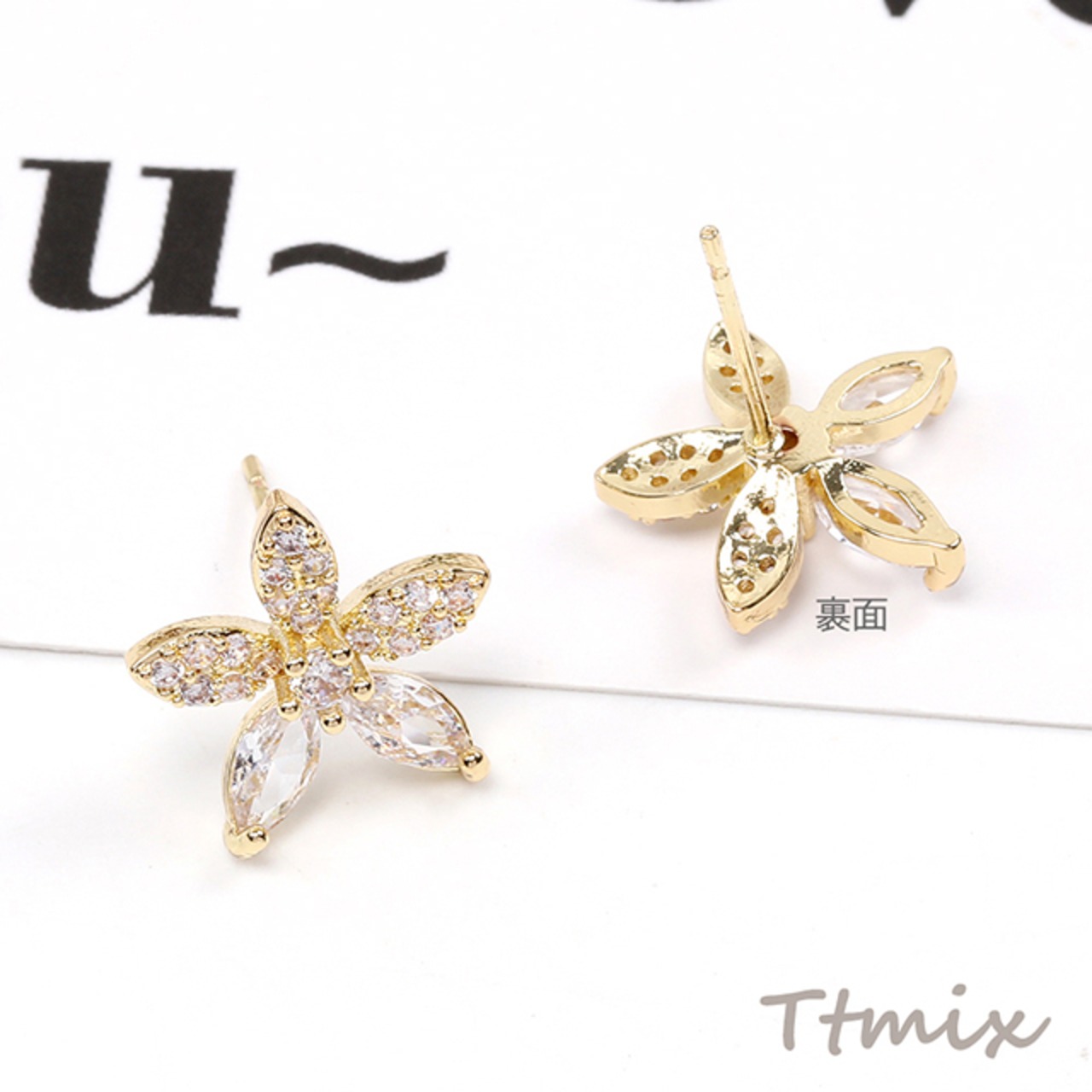 TE1069 デザインピアス ジルコニアピアス フラワー 五弁花 13mm(1ペア)