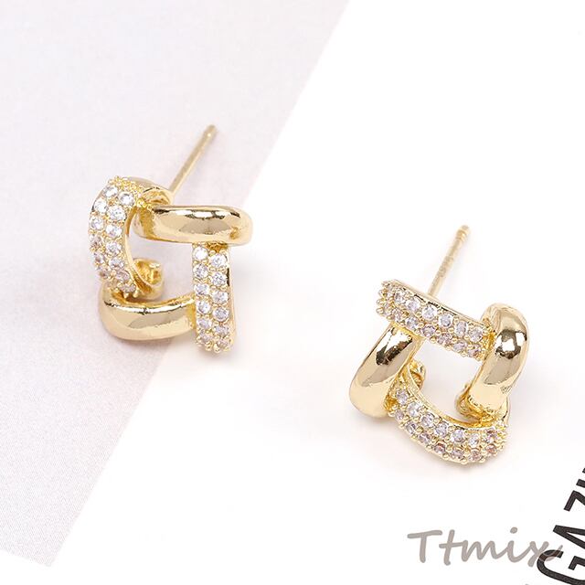 TE1070 デザインピアス ジルコニアピアス ひし形 14×15mm(1ペア)