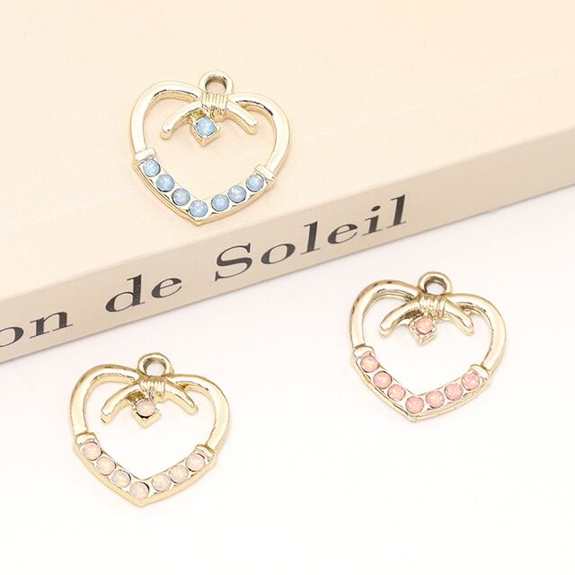M12184 メタルチャーム ラインストーン付きチャーム ハート型 1カン 17.5×18mm(4ヶ) | Beads&parts BASE2号店