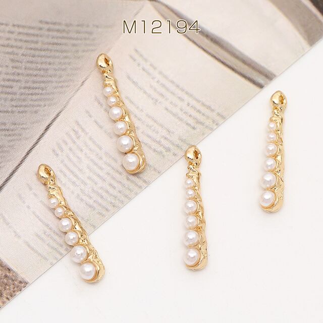 M12194 メタルチャーム パール付きチャーム 1カン 3.5×19mm(4ヶ)