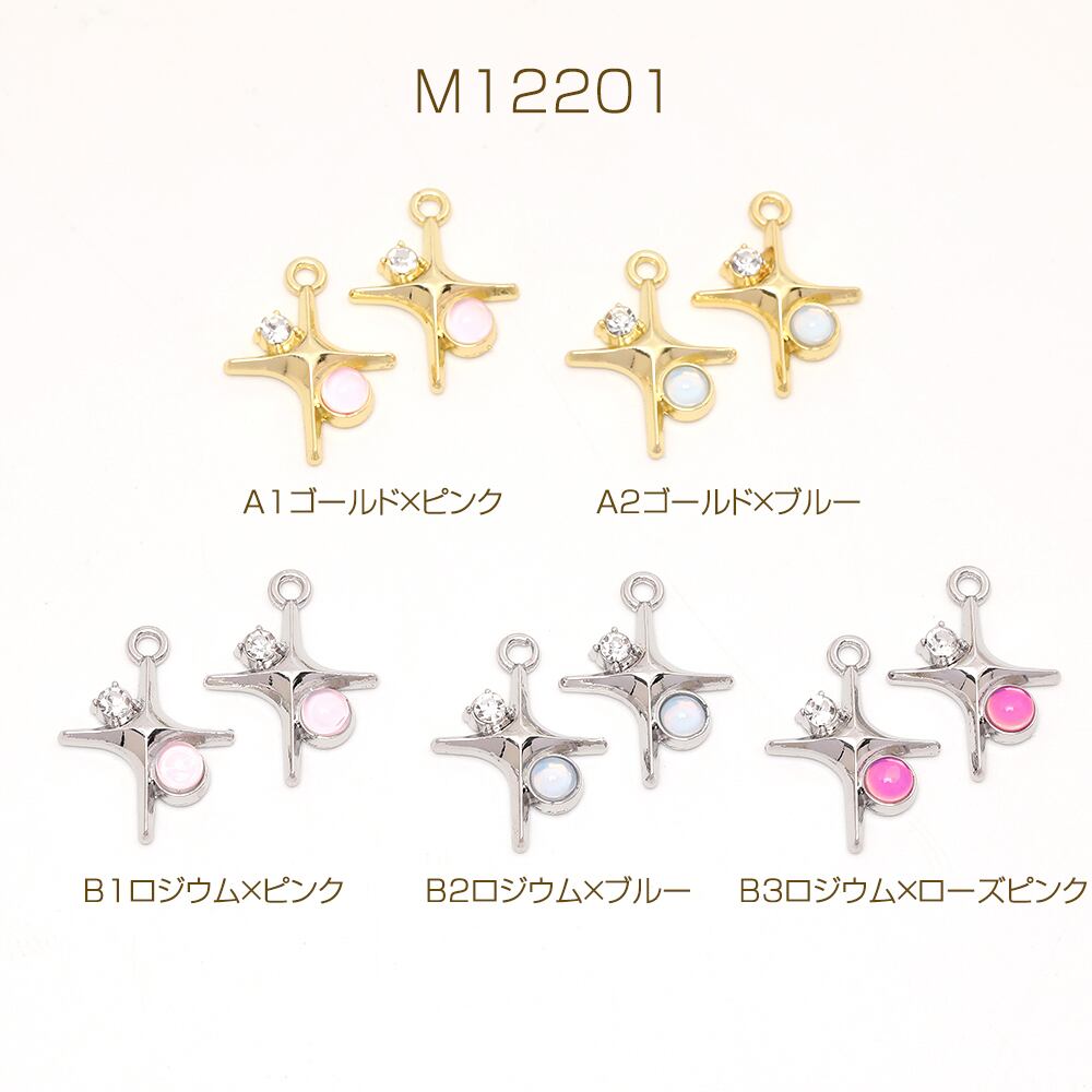 M12201 高品質メタルチャーム 星形 ジルコニア&天然キャッツアイ付き 1カン 16×21mm(2ヶ)