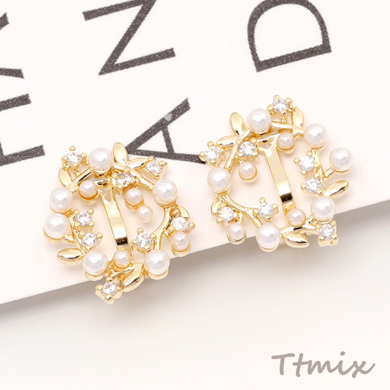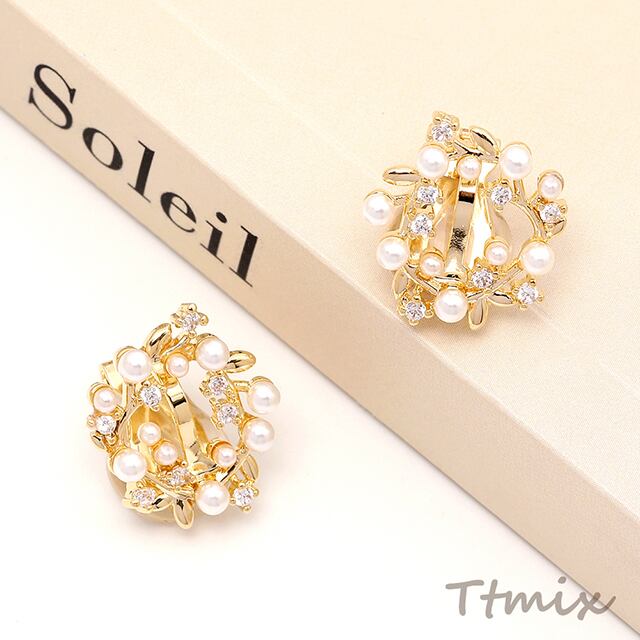 TE1096 クリップ式イヤリング リーフの枝 15×16.5mm(1ペア)