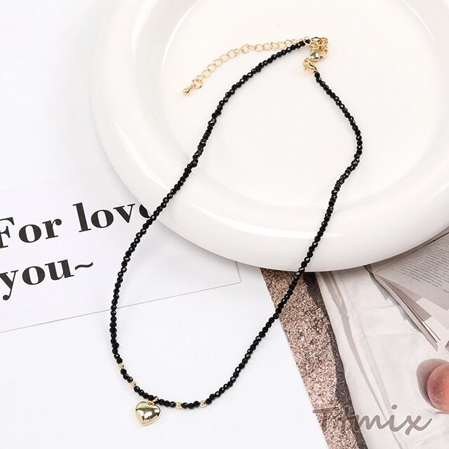 TN419 ネックレス ガラスビーズネックレス ハート型 ボール ブラック