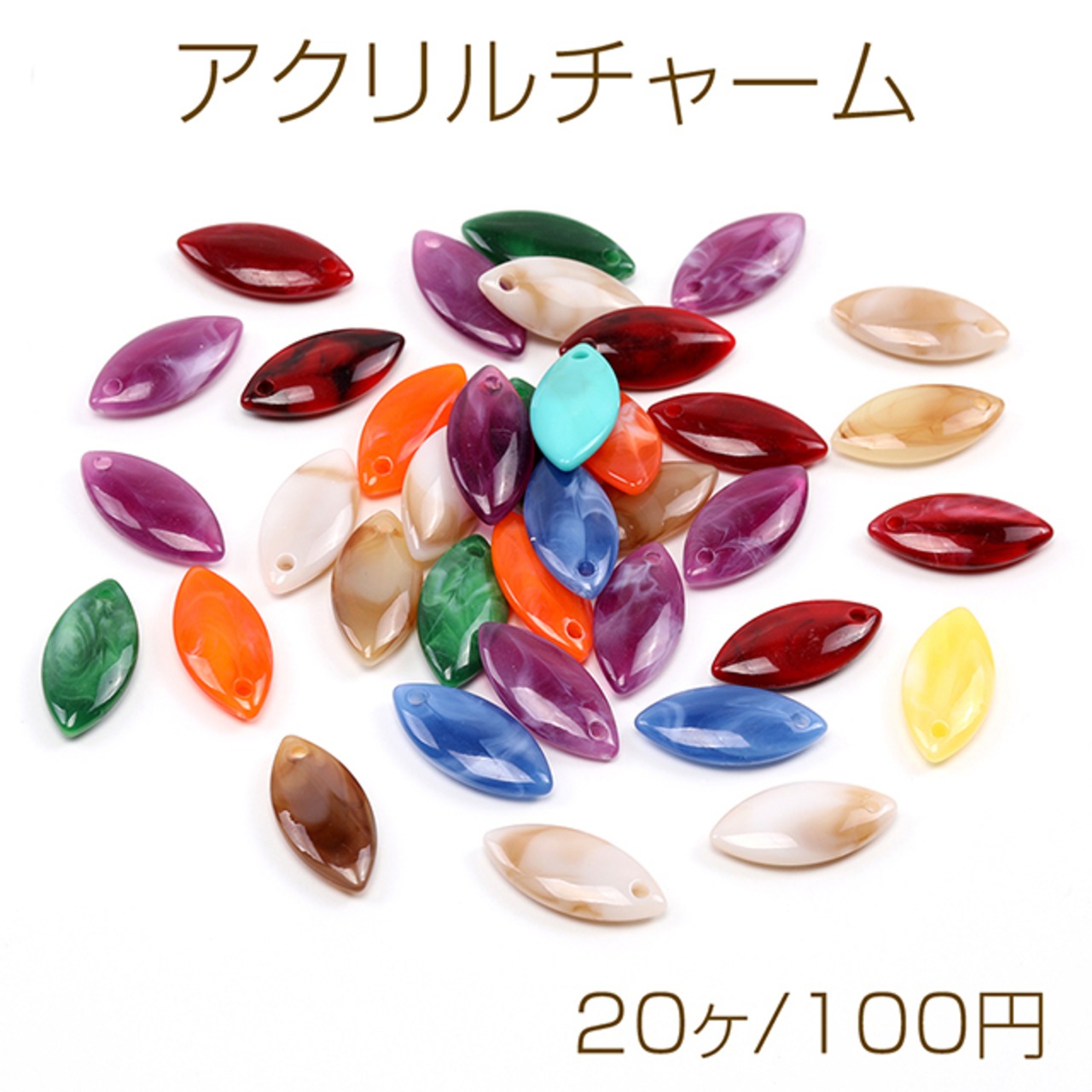 A4701 アクリルチャーム マーキス 1穴 12×25mm ミックスカラー(20ヶ)