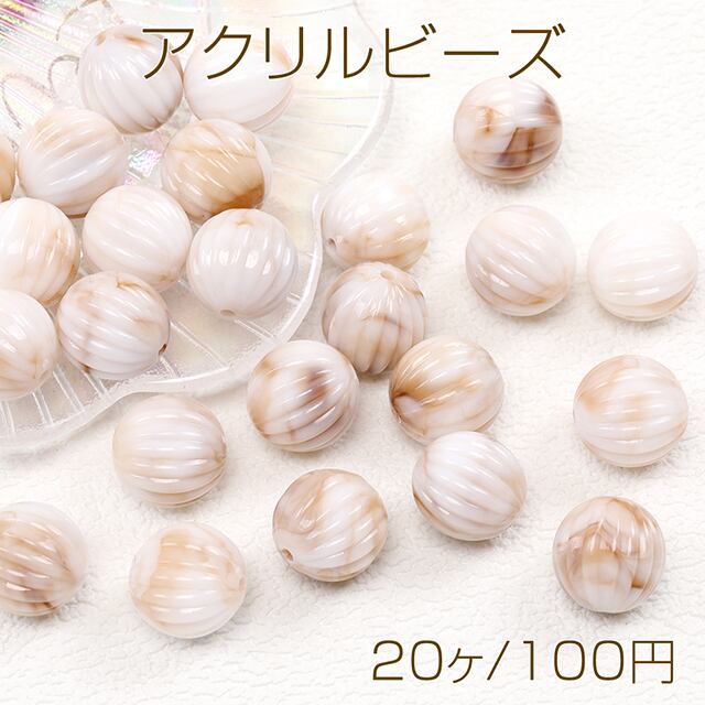 A4703 アクリルビーズ 筋入り丸玉 16mm グラデーションベージュ(20ヶ)