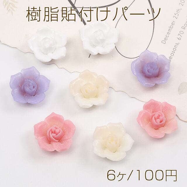 A4706 立体フラワーパーツ フラワー貼付けパーツ 樹脂貼付けパーツ 樹脂カボション フラワーモチーフ 接着パーツ 22mm(6ヶ) | Beads&parts BASE2号店