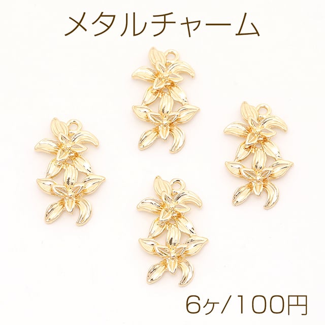 M12269 立体ダブルフラワーチャーム 花メタルチャーム フラワーモチーフ 2輪花 丸カンあり カン付き 14×22mm ゴールド(6ヶ) | Beads&parts BASE2号店