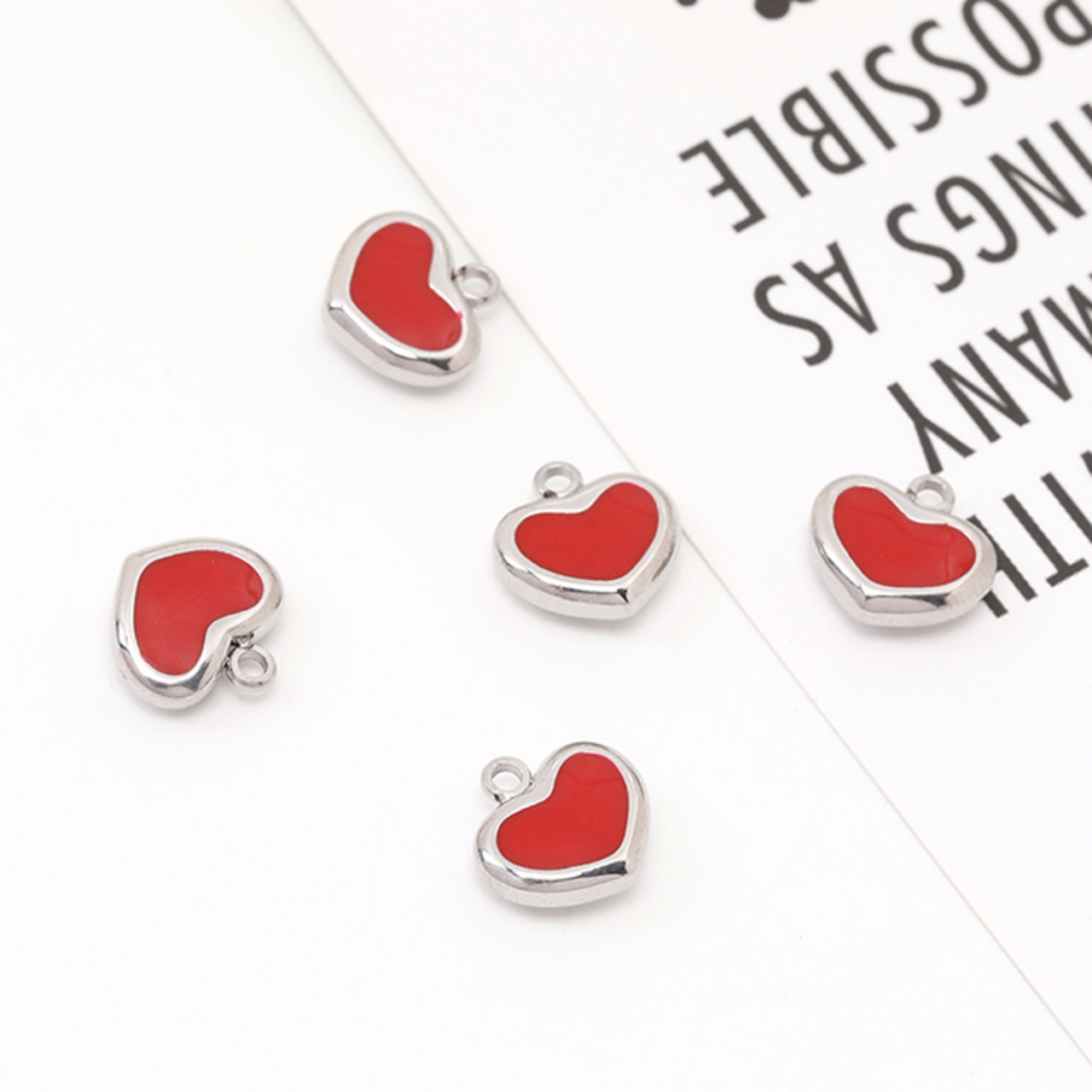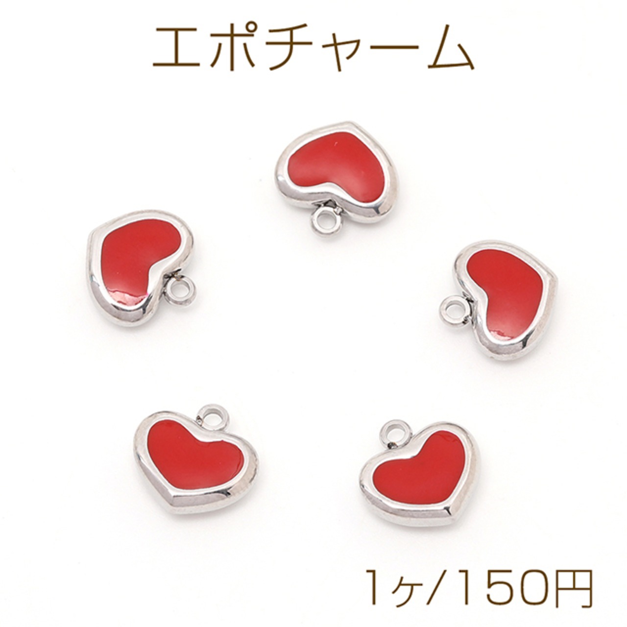M12294 色褪せないステンレス製チャーム ハートチャーム 赤いハートチャーム カン付き ロジウム 11×11mm(1ヶ)