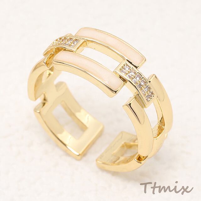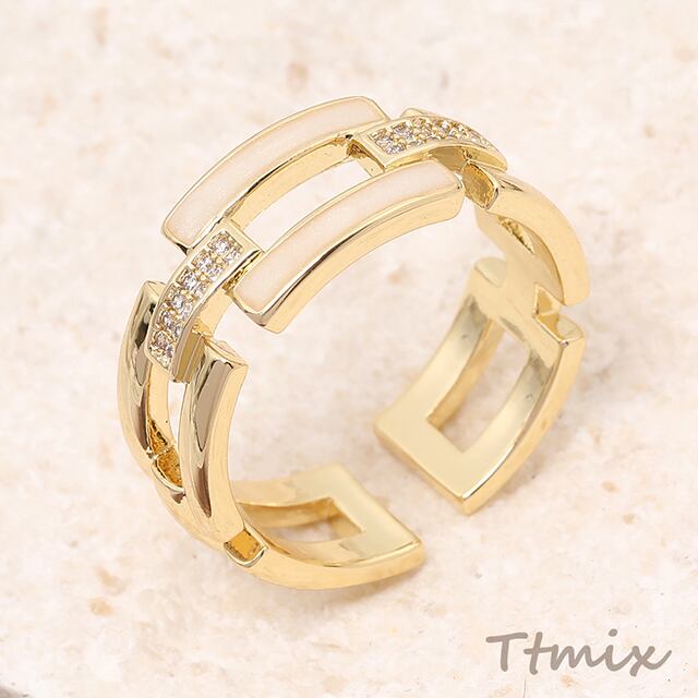 TR672 高品質オープンリング フリーサイズリング サイズ調整可 ジルコニアストーン付き 幅約8.5mm ゴールド(1ヶ)