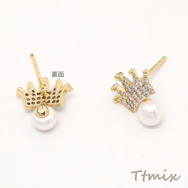 TE1123 王冠モチーフピアス レディースピアス おしゃれピアス トレンドピアス 11.5×13mm(1ペア)
