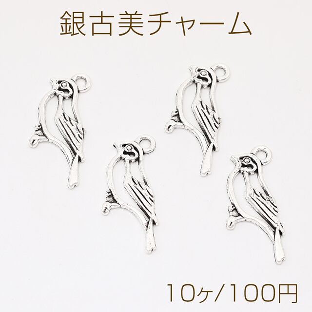 M12427 銀古美チャーム アンティークシルバー 立体メタルチャーム 鳥 11×27mm(10ヶ) | Beads&parts BASE2号店