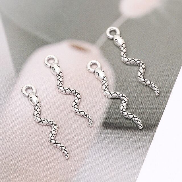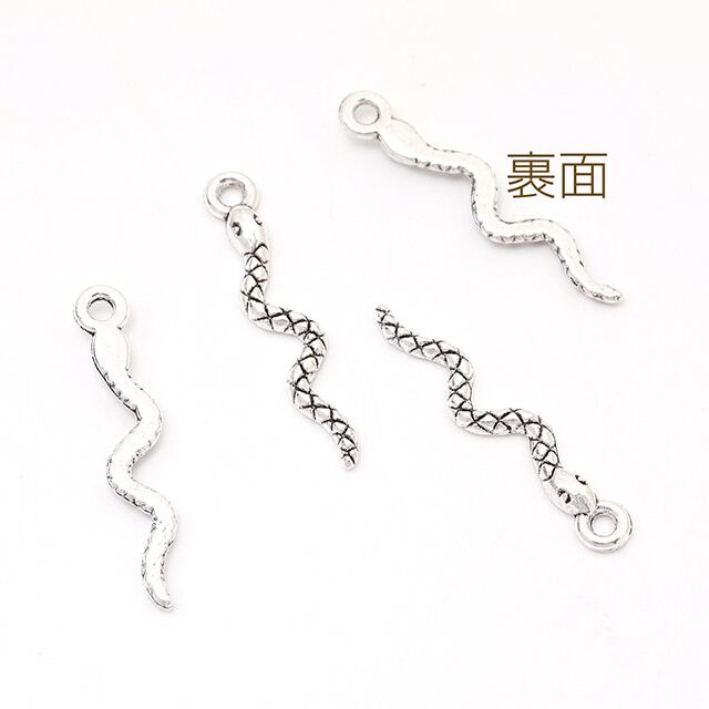 M12429 銀古美チャーム アンティークシルバー 立体メタルチャーム ヘビ 3×23mm(10ヶ) | Beads&parts BASE2号店