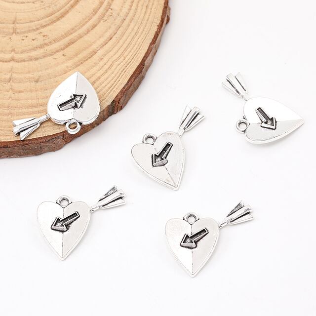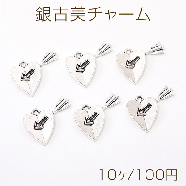 M12437 銀古美チャーム アンティークシルバー 立体メタルチャーム ハート(10ヶ) | Beads&parts BASE2号店