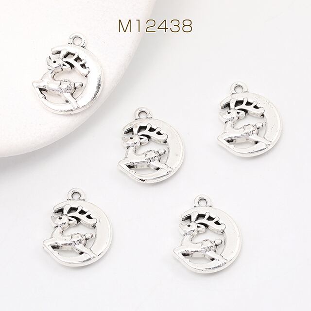 M12438 銀古美チャーム アンティークシルバー 立体メタルチャーム 月&シカ(10ヶ) | Beads&parts BASE2号店