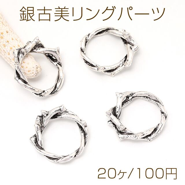 M12447 銀古美リングパーツ アンティークシルバー フープパーツ デザインリング コネクターパーツ ツイスト(20ヶ)