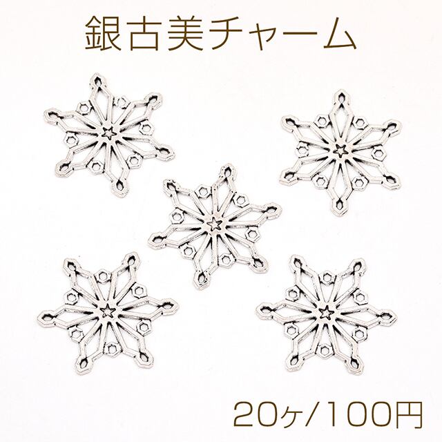 M12455 銀古美チャーム アンティークシルバー 立体メタルチャーム 雪結晶(20ヶ) | Beads&parts BASE2号店
