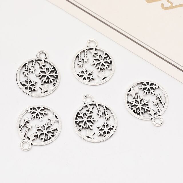 M12462 銀古美チャーム アンティークシルバー 立体メタルチャーム ラウンドチャーム 雪結晶(20ヶ)