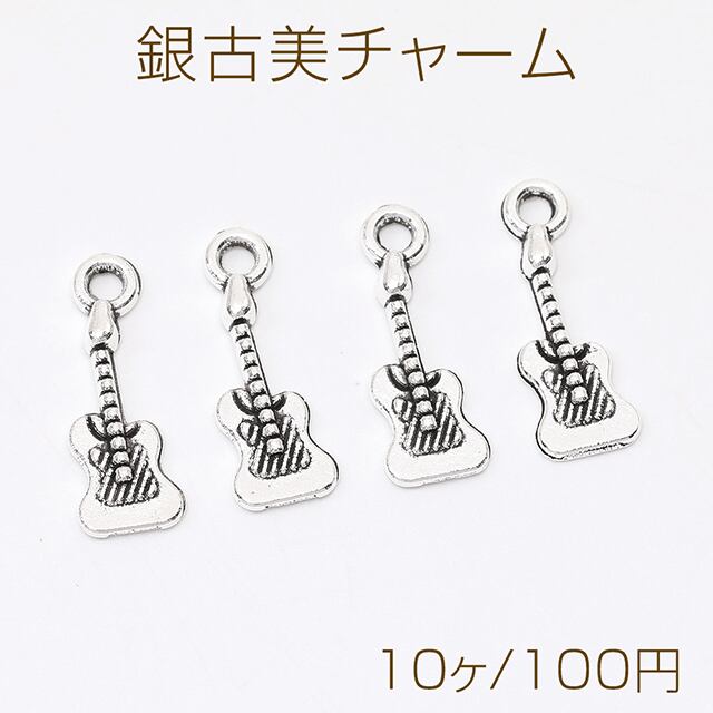 M12470 銀古美チャーム アンティークシルバー メタルチャーム 楽器チャーム ギター カン付き(10ヶ) | Beads&parts BASE2号店