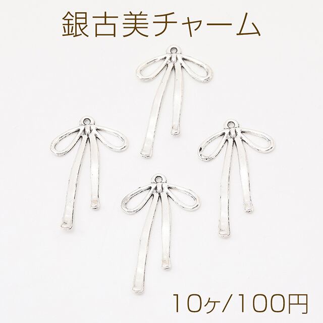 M12495 銀古美チャーム アンティークシルバー メタルチャーム リボン カン付き(10ヶ)