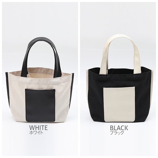 KW396 新作 ナチュラル感キャンバスバッグ 合皮持ち手 外側小物入れポケット付き(1ヶ)