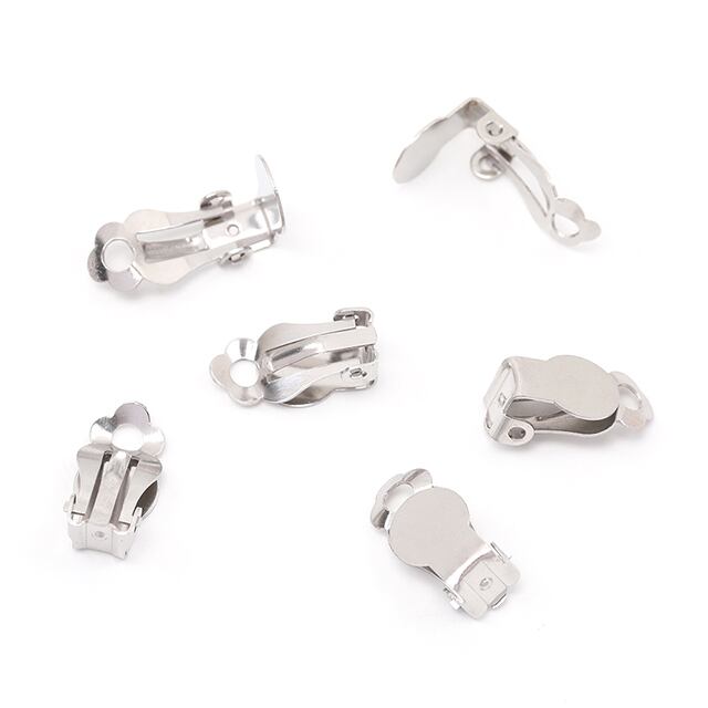 M12531 蝶バネ式イヤリング金具 ステンレス製 蝶バネイヤリングパーツ ピアス金具 シルバーカラー 平皿 8mm(10ヶ) | Beads&parts BASE2号店