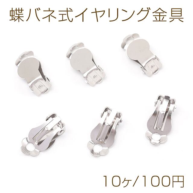 M12531 蝶バネ式イヤリング金具 ステンレス製 蝶バネイヤリングパーツ ピアス金具 シルバーカラー 平皿 8mm(10ヶ)