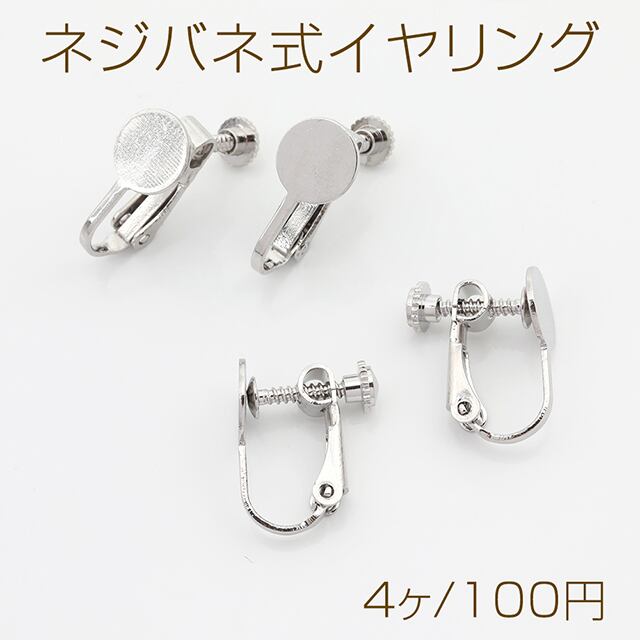 M12573 ネジバネ式イヤリング 平皿 ロジウム(4ヶ)