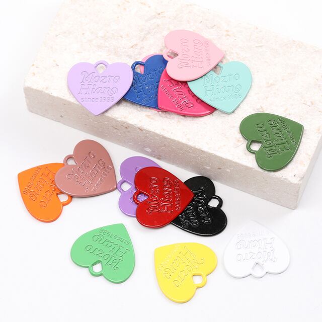 M12602 ミニカラーハートチャーム 刻印入り ミニメタルプレートチャーム ハート ミックスカラー 21×22mm(10ヶ) | Beads&parts BASE2号店