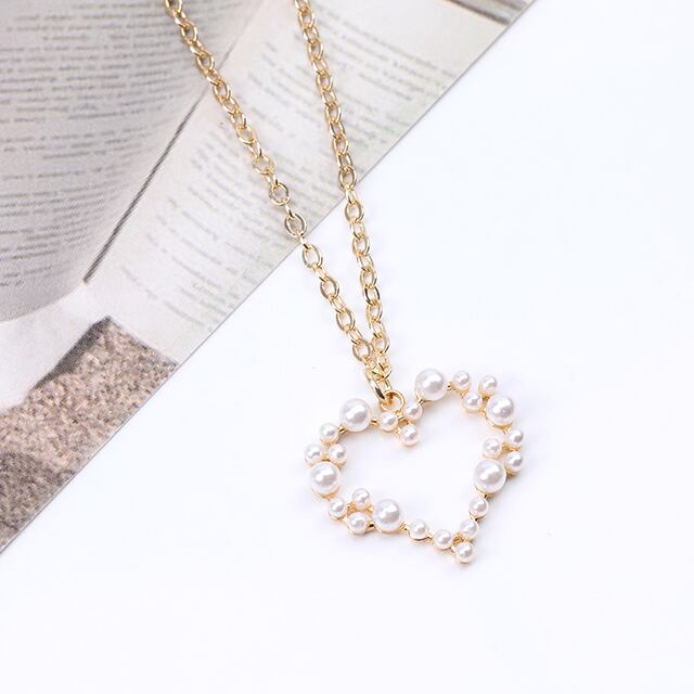 M12654 ハートチャーム 中抜きハートフレームチャーム パールビーズ装飾 カン付き 19×19mm(4ヶ) | Beads&parts BASE2号店