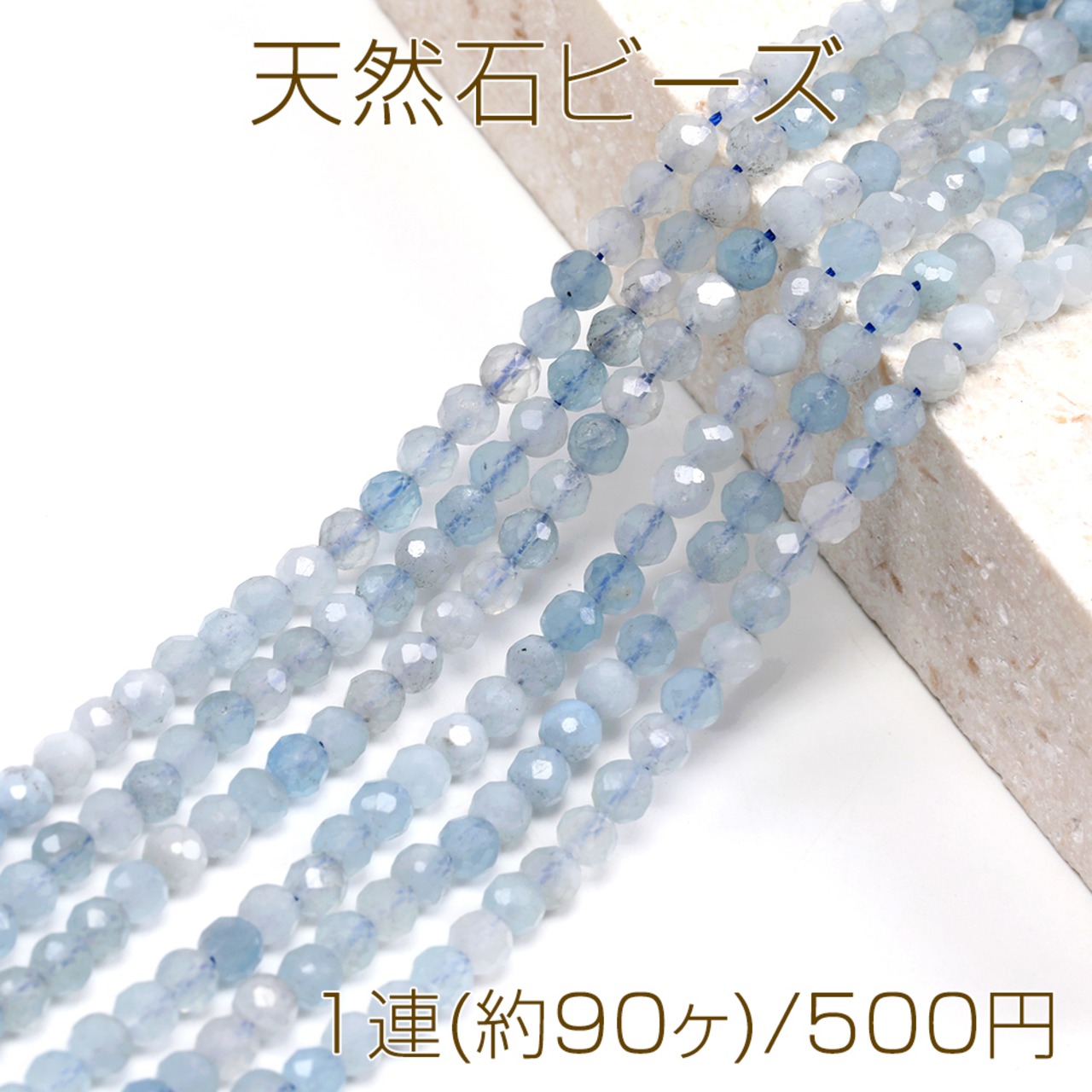 N3022 天然石ビーズ アクアマリン ラウンドカット 通し穴あり 4mm 1連(約90ヶ) | Beads&parts BASE2号店