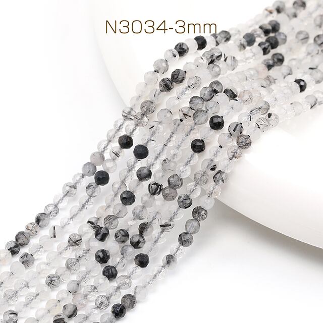 N3034-3mm 天然石ビーズ 連売り ブラックルチルクォーツ ラウンドカット 通し穴あり 3mm 1連(約120ヶ) | Beads&parts BASE2号店