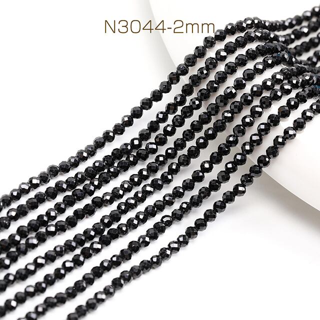 N3044-2mm 天然石ビーズ 連売り ブラックオニキス ラウンドカット 通し穴あり 2mm 1連(約170ヶ) | Beads&parts BASE2号店