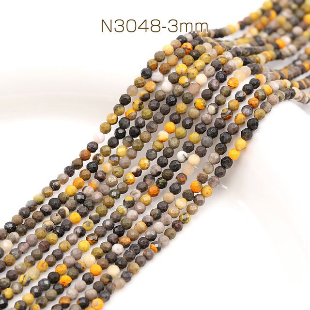 N3048-3mm 天然石ビーズ 連売り イエロージェイド ラウンドカット 通し穴あり 3mm 1連(約120ヶ) | Beads&parts BASE2号店